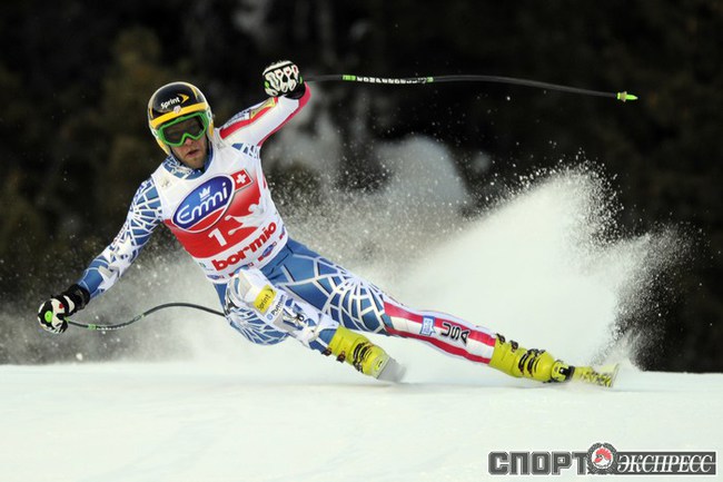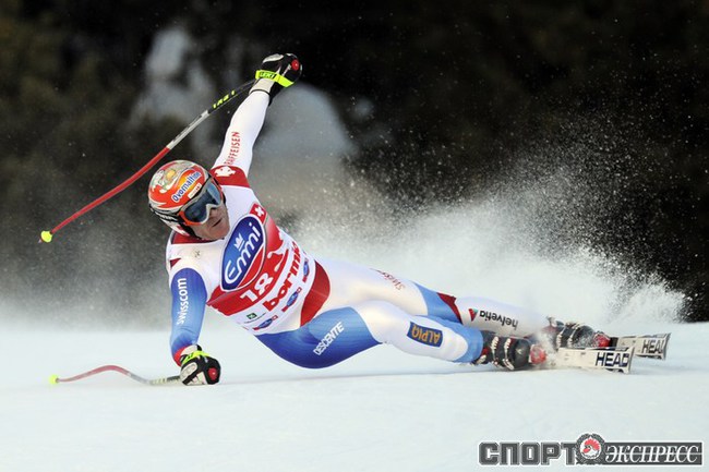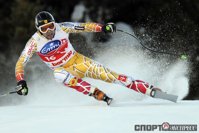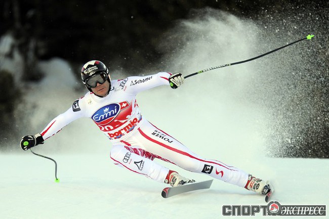 Горные Лыжи. Бормио. Этап Кубка мира. Скоростной спуск. Мужчины. 1. Вальхоффер (Австрия) - 1.59,66; 2. Цурбригген (Швейцария) - 1.59,74; 3. Иннерхофер (Италия) - 2.00,02. Фото AFP