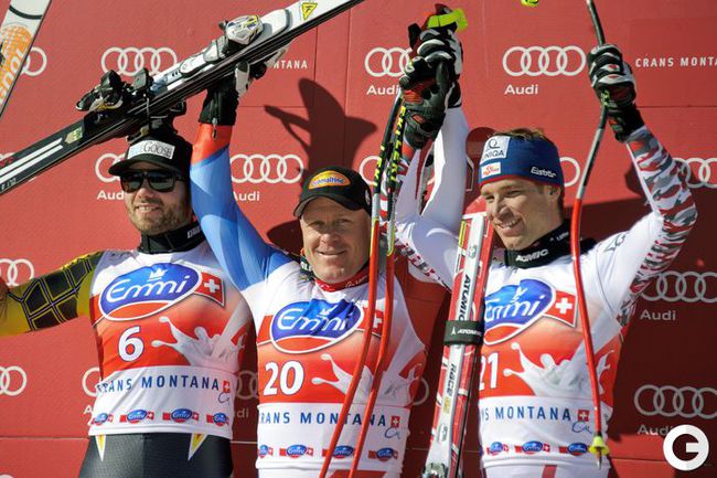 Горные лыжи. Кранс-Монтана. Кубок мира. Мужчины. Супергигант. 1. Кюш (Швейцария) - 1.33,11. 2. Хьюдек (Канада) - 1.33,27. 3. Райх (Австрия) - 1.33,32. 4. Цурбригген (Швейцария) - 1.33,54. 5. Райхельт (Австрия) - 1.33,68. 6. Иннерхофер (Италия) - 1.33,71. Фото AFP