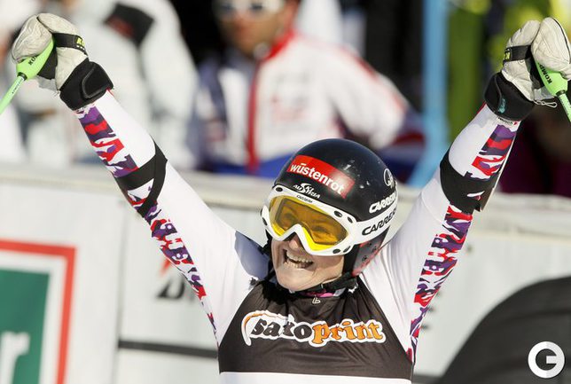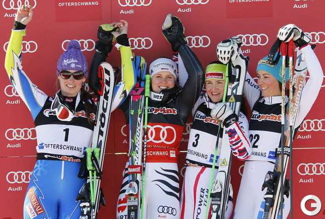 Горные лыжи. Офтершванг. Кубок мира. Женщины. Гигантский слалом. 1. Ребенсбург (Германия) - 2.33,30 (1.14,64+1.18,66). 2. Мазе (Словения) - 2.33,36 (1.14,75+1.18,61). 3. И. Куртони (Италия) - 2.34,04 (1.15,81+1.18,23). Фото REUTERS