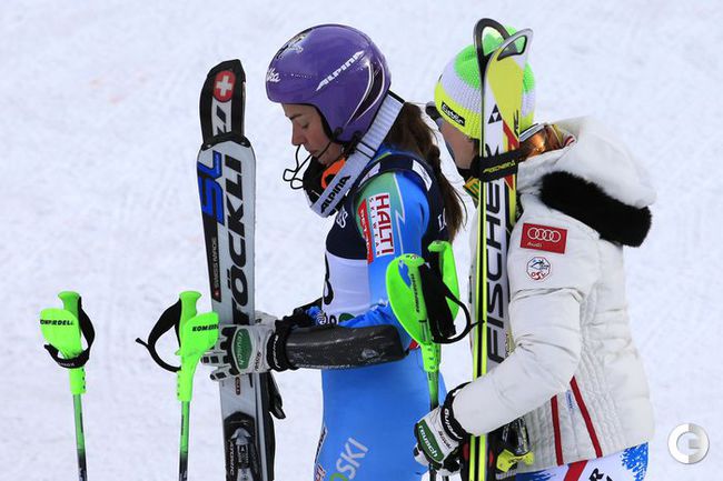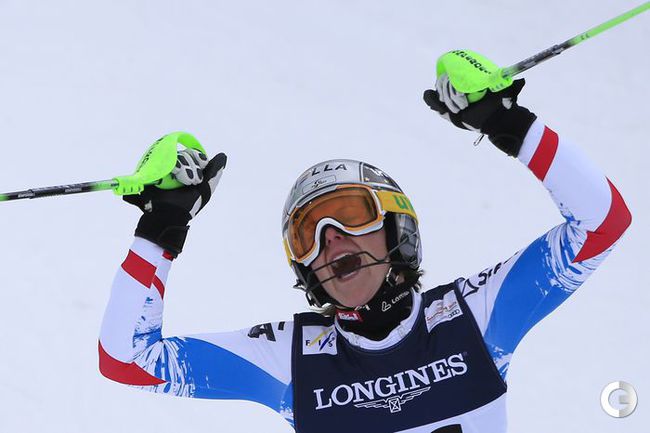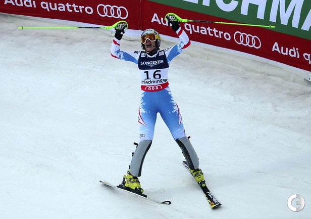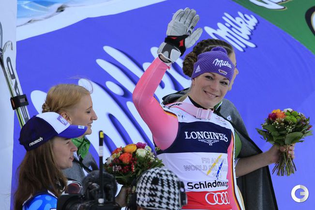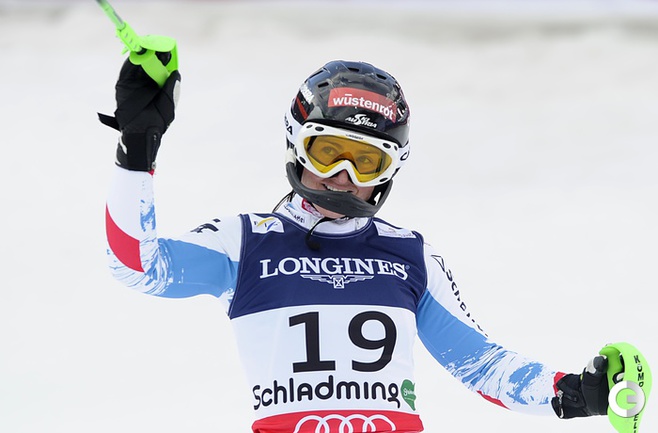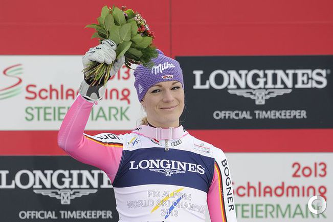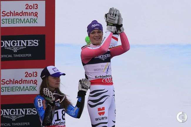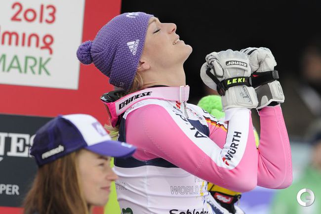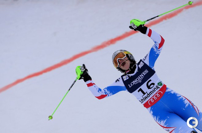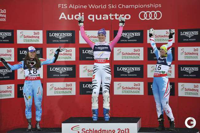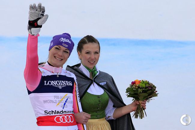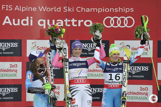 Горнолыжный спорт. Шладминг. Чемпионат мира. Женщины. Суперкомбинация. Скоростной спуск + слалом. 1. Хефль-Риш (Германия) - 2.39,92 (1.49,87+50,05). 2. Мазе (Словения) - 2.40,38 (1.49,67+50,71). 3. Хосп (Австрия) - 2.40,92 (1.50,99+49,93). Фото AFP