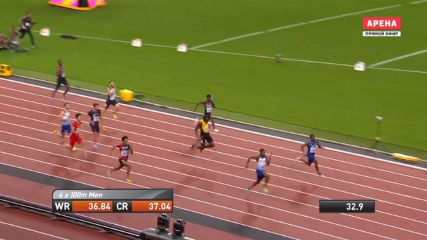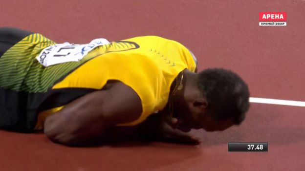Раскадровка сорванного забега Усэйна Болта в эстафете 4х100 м.