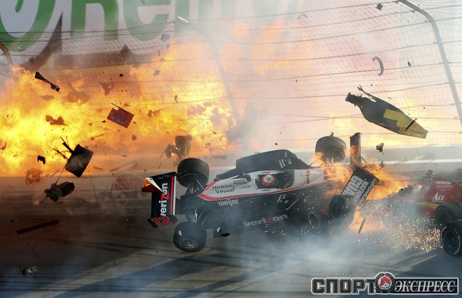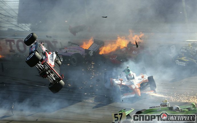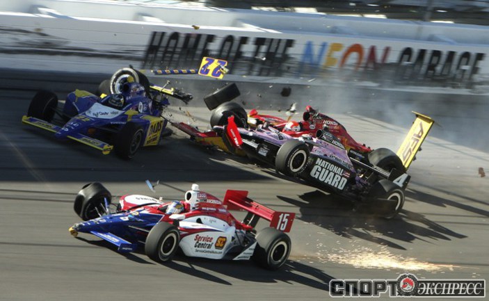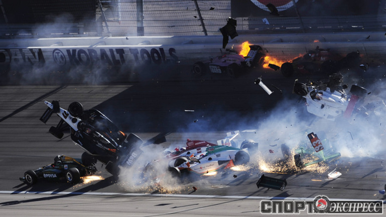 В воскресенье в Лас-Вегасе состоялся заключительный этап серии IndyCar, который, увы, завершился трагедией. На 12-м круге произошел массовый завал с участием 15-ти машин. Болид известного английского пилота Дэна Уэлдона взлетел в воздух и несколько раз перевернулся. Гонщик попал в кому, и скончался в госпитале. Фото REUTERS и AFP