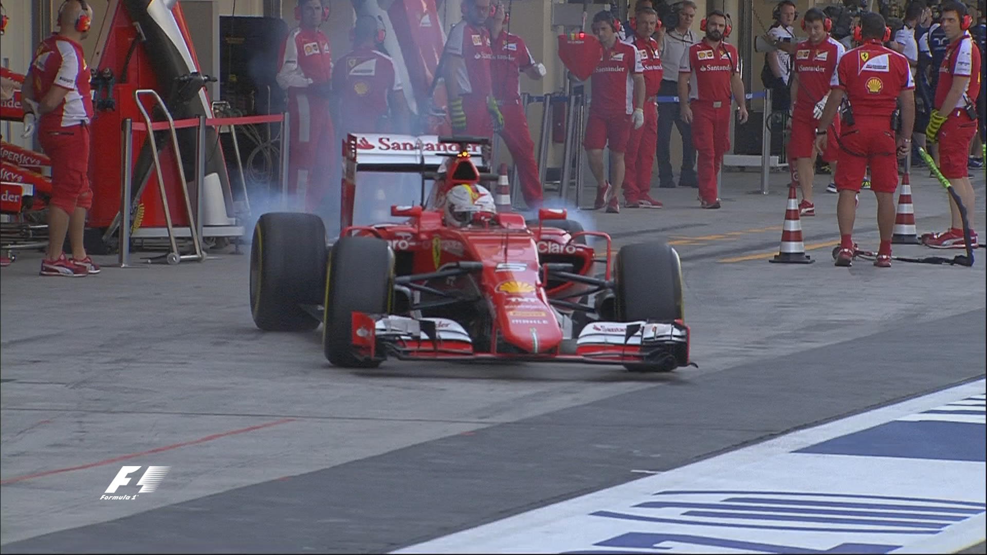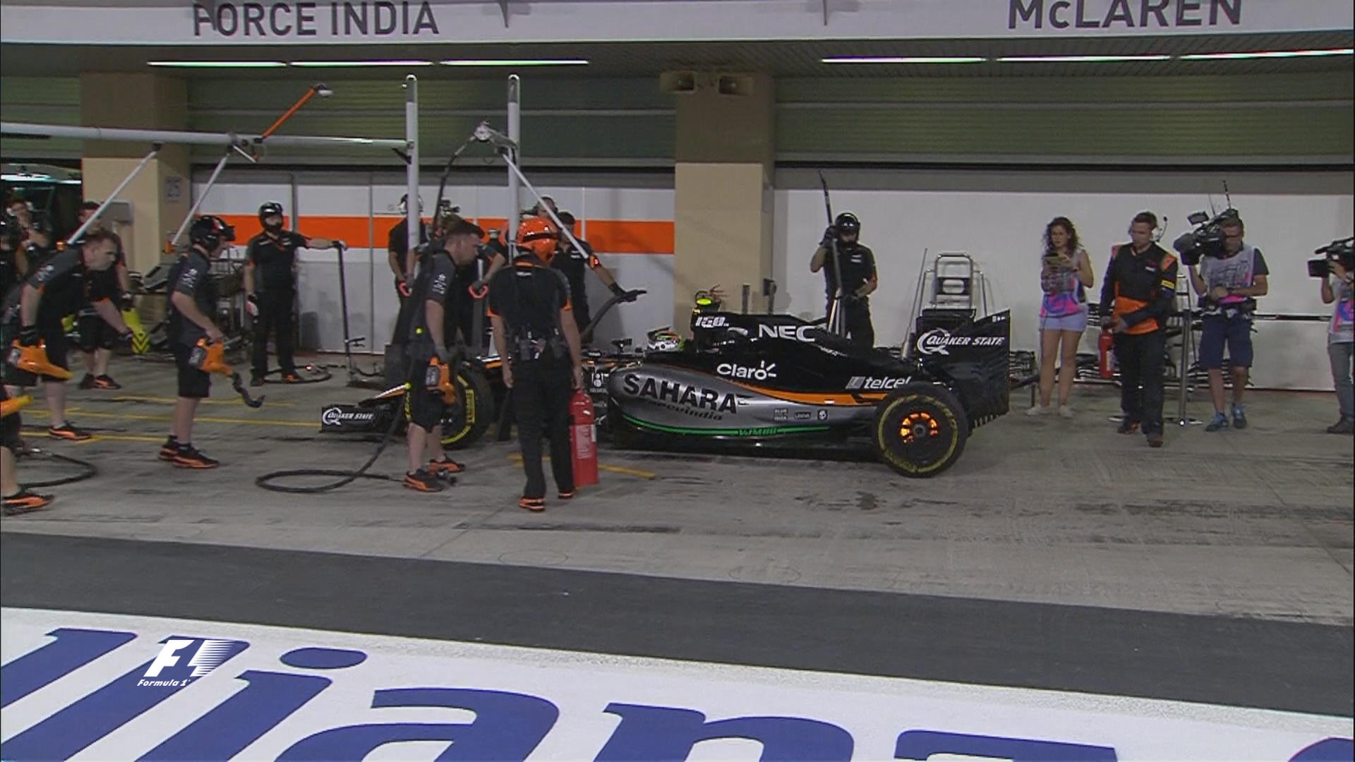 У Переса задымились задние колеса - вынужденный съезд в боксы к механикам с огнетушителями.