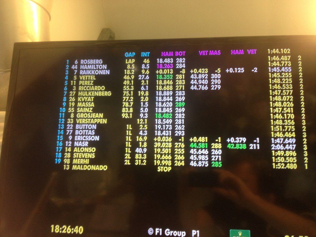 14-й круг. Даниил Квят обходит Эрикссона по внутреннему радиусу и входит в топ-10! Промежуточное положение после первых пит-стопов: Росберг, Феттель, Хэмилтон, Райкконен, Перес, Грожан, Риккьярдо, Хюлькенберг, Масса, Квят.