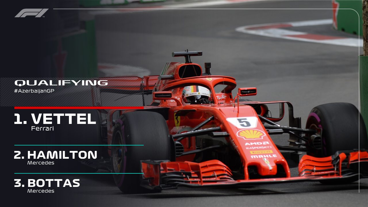 Себастьян Феттель выигрывает квалификацию "Гран-при Азербайджана". Это его третий поул в сезоне и 53-й в карьере.