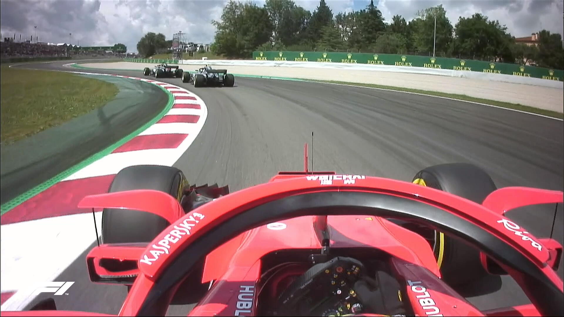 ПОЕХАЛИ! Сразу же Феттель атаковал Боттаса и на первом поворота обошел представителя "Мерседеса"!