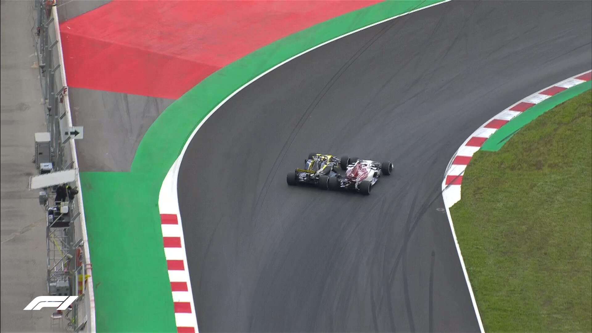 1-й круг. И сразу же авария. Хюлькенберг сзади начал атаковать Грожана и врезался в соперника. Машины разбиты, похоже, они уже закончили для себя гонку.