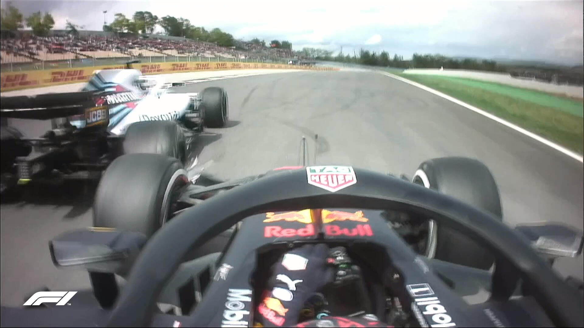 44-й круг. Ферстаппен пошел на обгон Стролла, ударился тому в заднее колесо и сломал антирило. Наверное, придется еще раз заехать на пит-стоп.