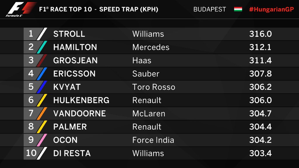 Примечание: Нико Хюлькенберг потерял пять мест из-за смены коробки передач. Даниил Квят наказан на три позиции за блокировку Лэнса Стролла в ходе первого сегмента квалификации