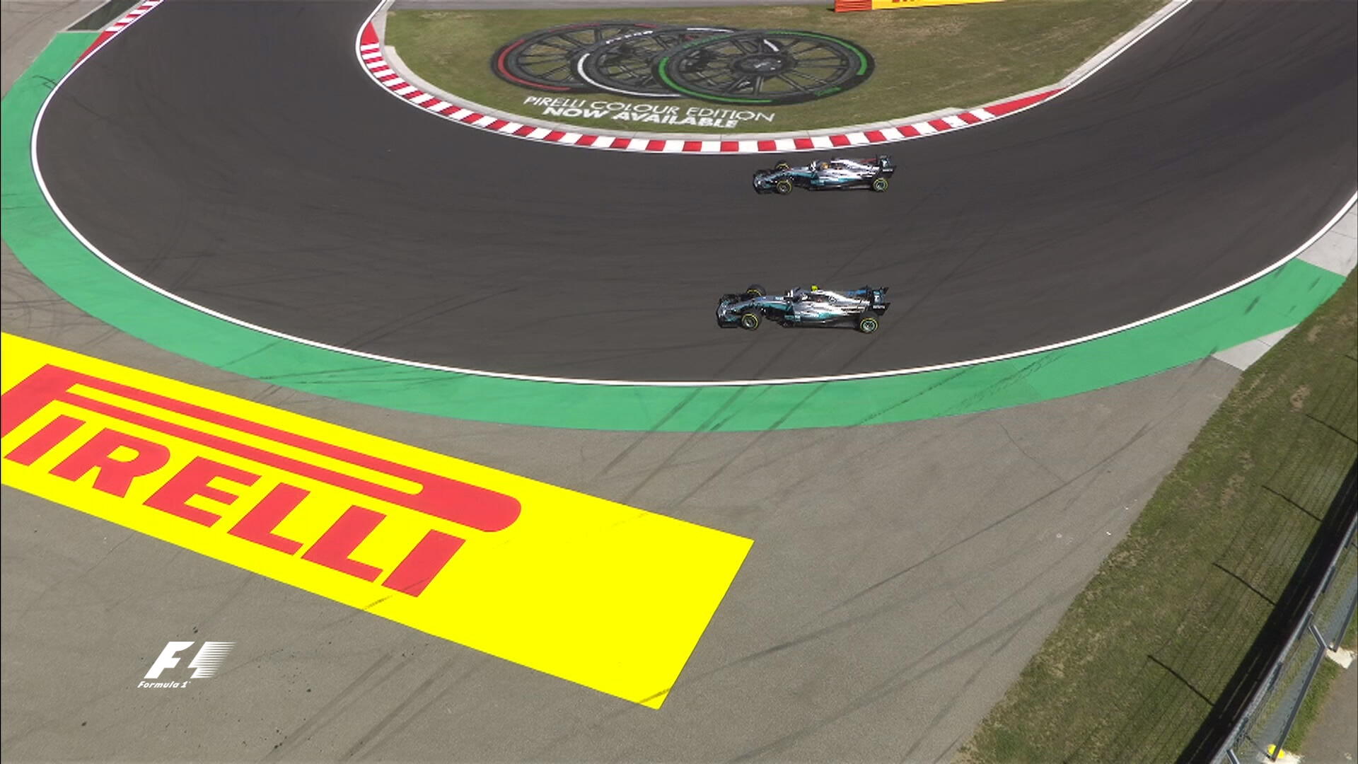 29-й круг: Хэмилтон опережает Сайнса на 22 секунды. Это уровень развития команд: впереди "Мерседес", "Феррари" и один "Ред Булл", позади – все остальные.