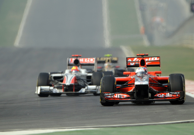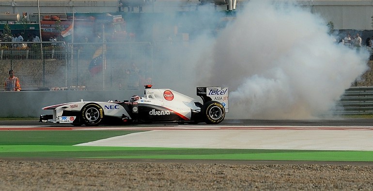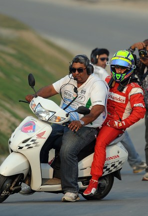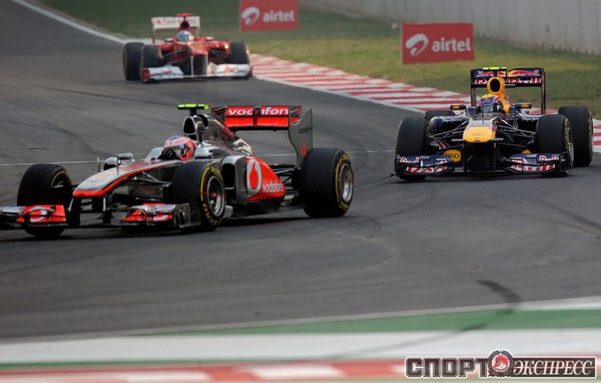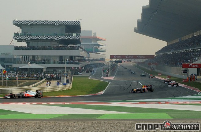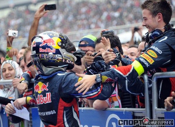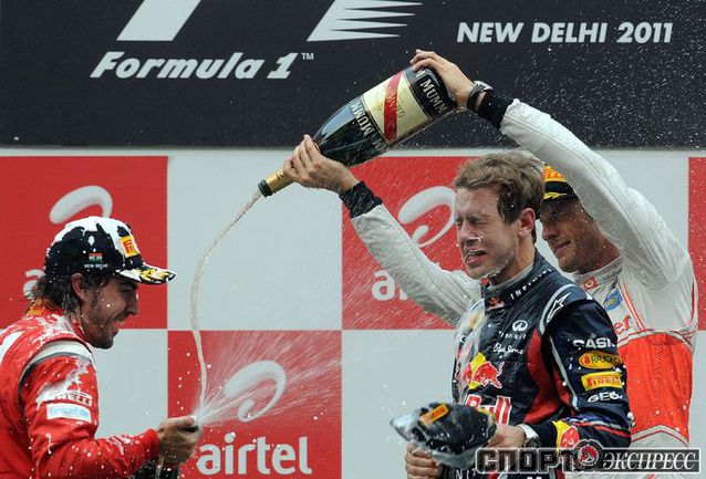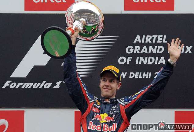 Формула-1. Бара-Нойда (Индия). Чемпионат мира. 17-й этап. "Гран-при Индии". Чемпион мира-2010 и 2011 Себастьян Феттель выиграл квалификацию (1.24,178), показал самый быстрые круг в гонке (1.27,249 на 60-м, заключительном круге), а также лидировал на протяжении всей гонки, что позволило немецкому пилоту "Ред Булл" собрать "Большой шлем". Фото AFP