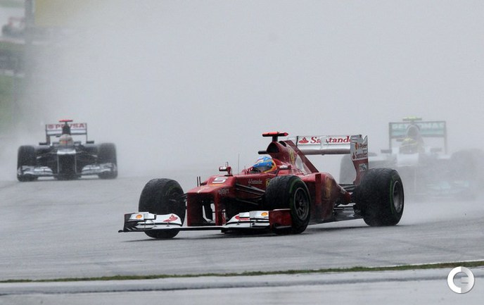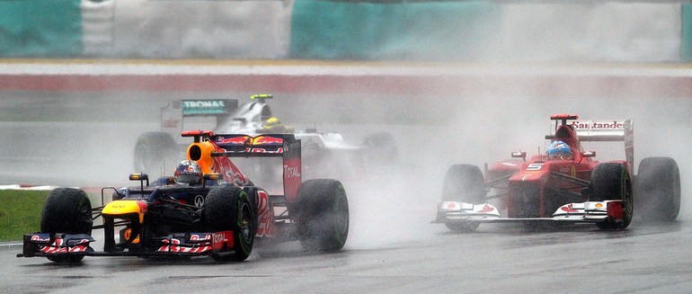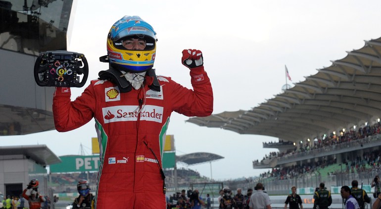 В Куала-Лумпуре завершился второй этап чемпионата-2012. Первым финишную черту пересек пилот "Феррари" Фернандо Алонсо. Второе место занял пилот "Заубера" Серхио Перес. Тройку замкнул представитель "Макларена" Льюис Хэмилтон. Россиянин Виталий Петров завершил гонку 16-м. Фото AFP