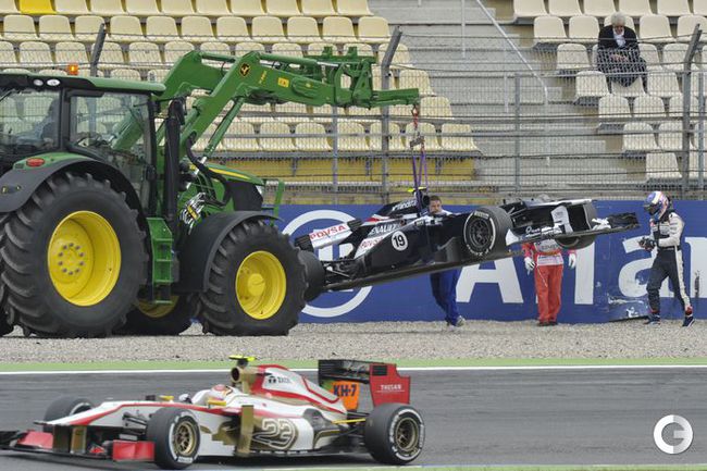 Формула-1. Хоккенхайм. Чемпионат мира. 10-й этап. "Гран-при Германии". Вторые свободные заезды. 1. Мальдонадо (Венесуэла, "Уильямс") - 1.27,476 (14 кругов). 2. Росберг (Германия, "Мерседес") - 1.27,564 (24). 3. Феттель (Германия, "Ред Булл") - 1.27,902 (24)...21. ПЕТРОВ (Россия, "Катерхэм") - 1.32,241 (22). Фото AFP