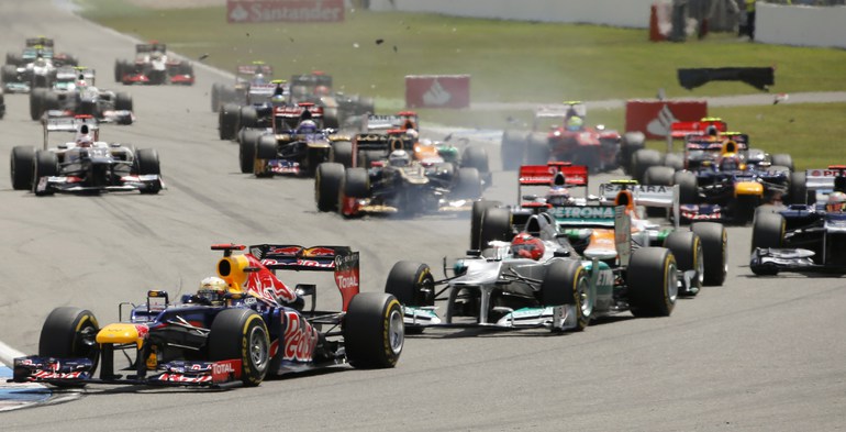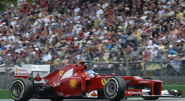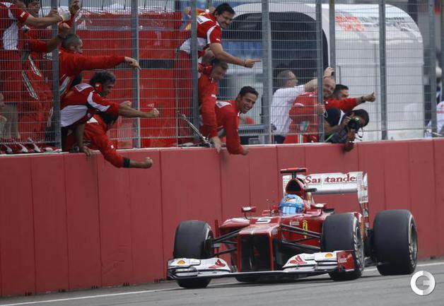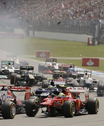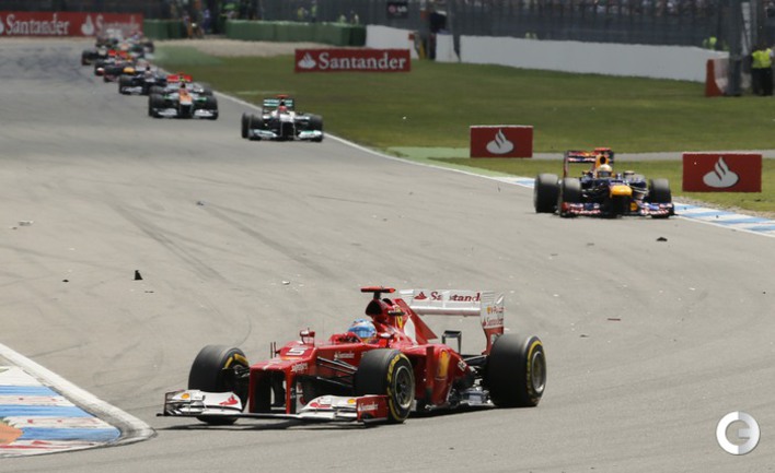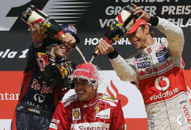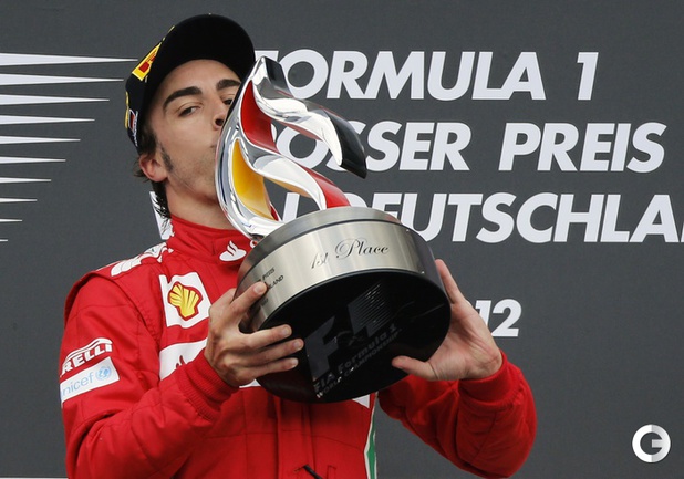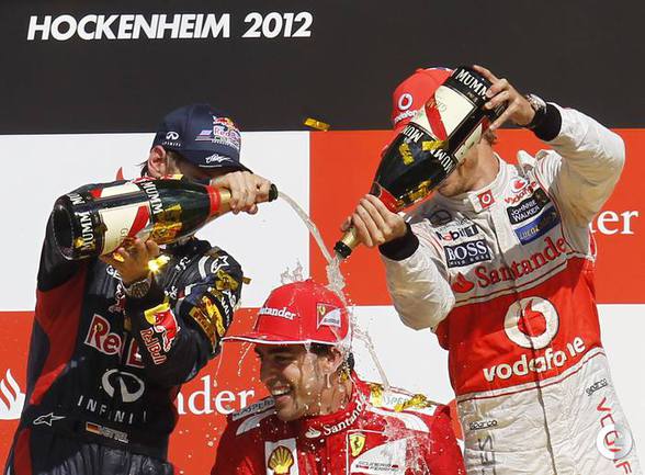Формула-1. В Хоккенхайме завершился 10-й этап чемпионата мира-2012. Первым к финишу в третий раз в этом сезоне пришел Фернандо Алонсо на "Феррари". Второе место занял немец Себастьян Феттель из "Ред Булла". Тройку замкнул пилот "Макларена" Дженсон Баттона. Фото REUTERS