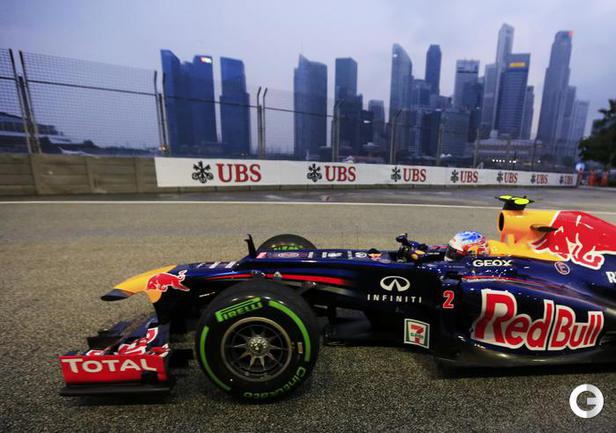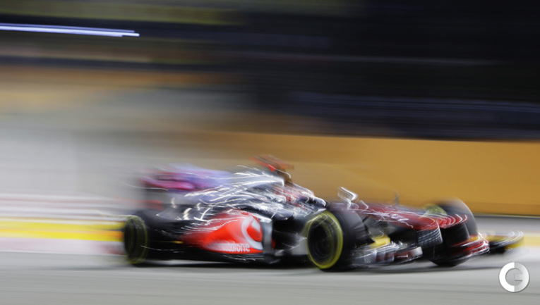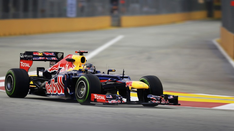 Формула-1. Сингапур. Чемпионат мира. "Гран-при Сингапура". 14-й этап. Первые свободные заезды. 1. Феттель ("Ред Булл") - 1.50,566. 2. Хэмилтон ("Макларен") - отставание 0,049. 3. Баттон ("Макларен") - 0,893. Фото REUTERS
