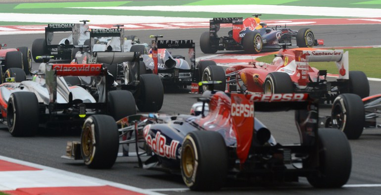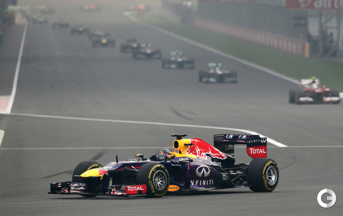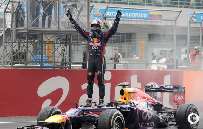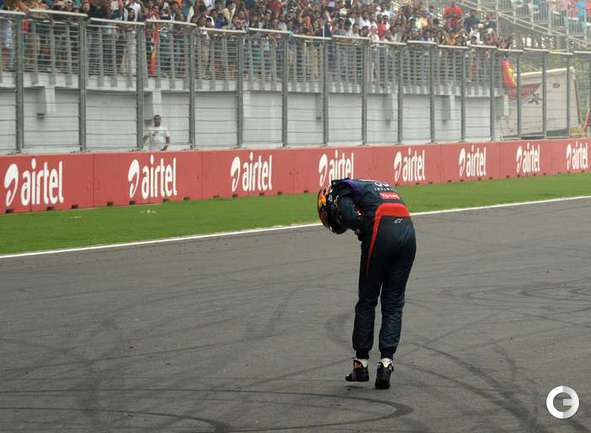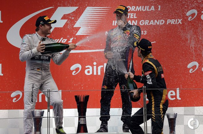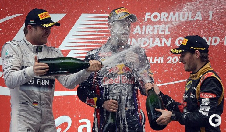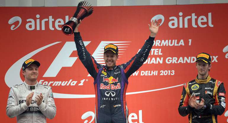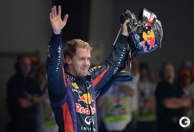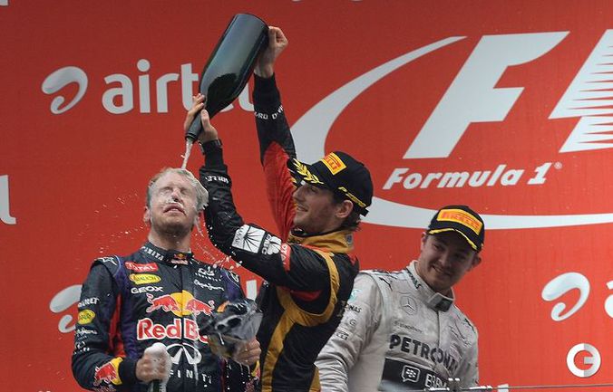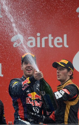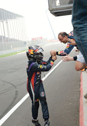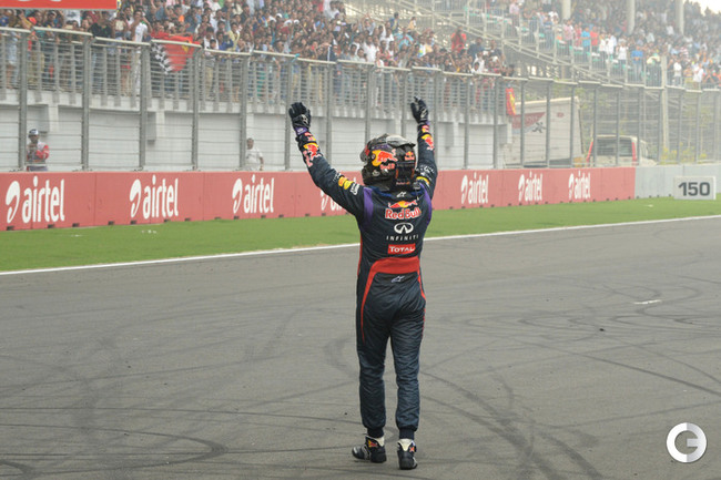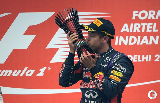 Нью-Дели (Индия). Формула-1. Чемпионат мира. 16-й этап. "Гран-при Индии. " 1. Феттель (Германия, "Ред Булл") – 1 час 31:12.187 (60 кругов). 2. Росберг (Германия, "Мерседес") – отставание 29.823. 3. Грожан (Франция, "Лотус") – 39.892. 4. Масса (Бразилия, "Феррари") – 41.692. 5. Перес (Мексика, "Макларен") – 43.829. 6. Хэмилтон (Великобритания, "Мерседес") – 52.400. 7. Райкконен (Финляндия, "Лотус") – 1:07.900. 8. Ди Реста (Великобритания, "Форс Индия") – 1:12.800. 9. Сутиль (Германия, "Форс Индия") – 1:14.700. 10. Риккьярдо (Австралия, "Торо Россо") – 1:16.200. Немец Себастьян Феттель, выступающий за "Ред Булл", стал четырехкратным чемпионом мира. Сегодня он победил на "Гран-при Индии", набрал 322 очка и стал недосягаемым для испанца Фернандо Алонсо за три этапа до конца чемпионата. Для 26-летнего Феттеля это чемпионство стало четвертым в карьере и четвертым подряд.Победа Феттеля также обеспечила "Ред Буллу" досрочную победу в Кубке конструкторов. Фото AFP