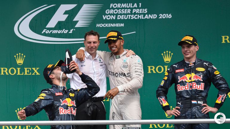 Пилот "Мерседеса" Льюис Хэмилтон выиграл "Гран-при Германии". Британец со старта вышел на первое место и уверенно добрался до финиша лидером. Вторым стал пилот "Ред Булла" Даниэль Риккьярдо, замкнул тройку его партнер по команде Макс Ферстаппен, а Нико Росберг замкнул четверку. Российский пилот "Торо Россо" Даниил Квят финишировал 15-м.