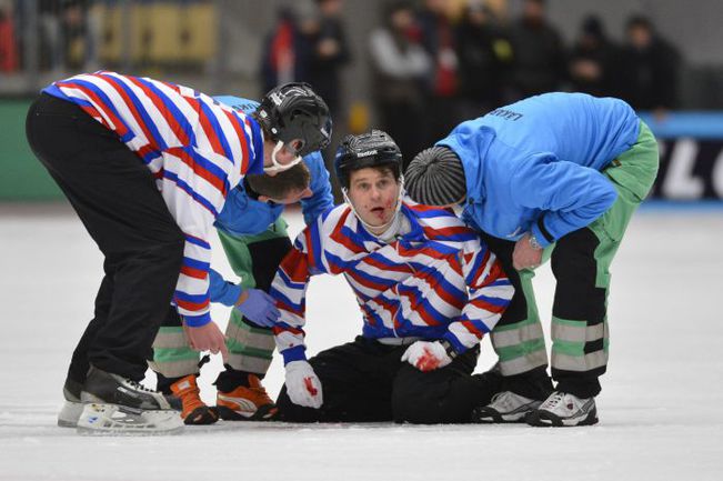 Матч за бронзу получился не менее драматичным. В первом тайме при игровом столкновении соперник коньком рассек бровь и нос Ларссону - залитого кровью финна прямо с площадки увезли в больницу. Во второй половине игры пролилась и казахстанская кровь - разбили нос Галяутдинову. Игра шла мяч в мяч, а исход борьбы решил чудо-гол Насонова, обыгравшего на пути к воротам едва ли не всю команду соперника, и более длинная скамейка запасных казахстанцев.