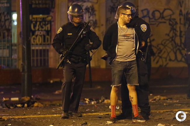 «Сан-Франциско Джайнтс» в решающем седьмом матче финальной серии МЛБ победил «Канзас-Сити Роялс» со счетом 3:2. После матча на улицах начались народные гуляния. Фанаты распивали спиртные напитки и запускали фейерверки. В итоге празднование переросло в массовые беспорядки, в которые была вынуждена вмешаться полиция. Два человека получили огнестрельные ранения, один — ножевое. Фото REUTERS