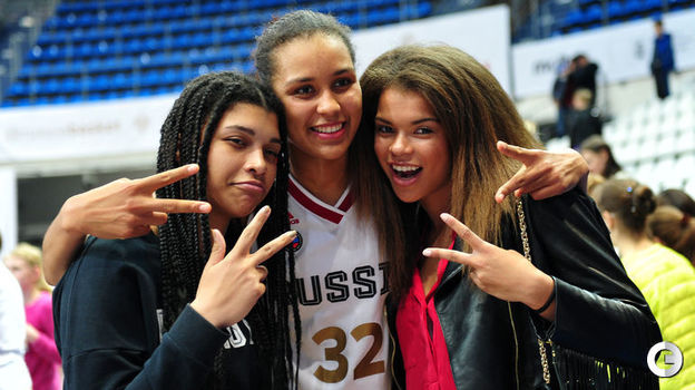 Состав женской национальной сборной России на чемпионат Европы - 2017: защитники Елена Беглова (29 лет, 175 см), Евгения Белякова (30 лет, 184 см), Наталья Жедик (28 лет, 184 см), Елена Кириллова (31 год, 185 см), Ксения Левченко (21 год, 168 см), Эпифания Принс (29 лет, 175 см), форварды Жосселина Майга (21 год, 193 см), Раиса Мусина (19 лет, 191 см), Мария Черепанова (29 лет, 190 см), центровые Мария Вадеева (18 лет, 194 см), Наталья Виеру (27 лет, 200 см), Ксения Тихоненко (24 года, 191 см).
