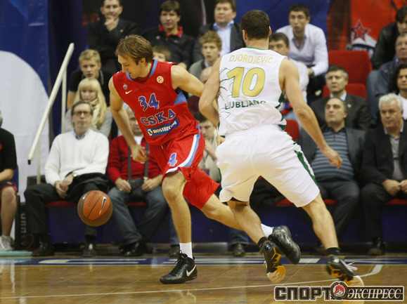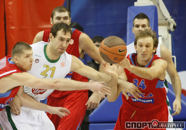 Евролига. Мужчины. 1-й групповой турнир. 4-й тур. Группа C. ЦСКА (Россия) - "Олимпия" (Любляна) - 79:69 (30:15, 14:18, 20:21, 15:15). Обыграв в 4-м туре Евролиги словенскую "Олимпию", баскетболисты ЦСКА прервали двухматчевую серию неудач на европейской арене. Фото - Александр Федоров, "СЭ"