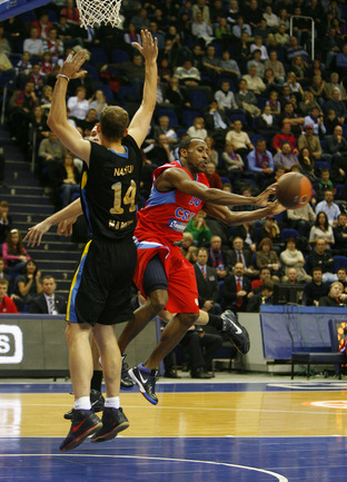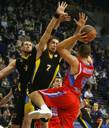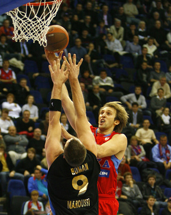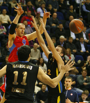 Евролига. Мужчины. 1-й групповой турнир. 6-й тур. Группа C. ЦСКА (Россия) - "Марусси" (Греция) - 78:65 (15:13, 20:17, 23:12, 20:23). ЦСКА одержал четвертую победу в Евролиге и сделал важный шаг к выходу в "Топ-16". На своей площадке чемпионы России уверенно обыграли греческий "Марусси". Фото - Алексей ИВАНОВ, "СЭ"