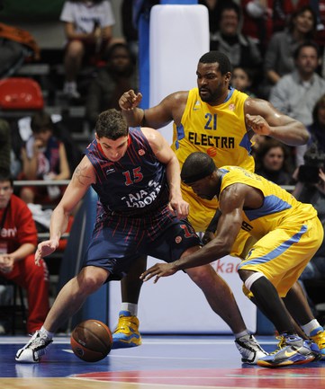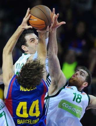 Баскетбол. Евролига. Мужчины. 1/4 финала. Первые матчи. "Барселона" (Испания) - "Панатинаикос" (Греция) - 83:82 (14:14, 23:21, 20:25, 26:22). "Реал" (Испания) - "Памеса" (Испания) - 71:65 (20:18, 13:14, 19:21, 19:12). "Баскония" (Испания) - "Маккаби" Т-А (Израиль) - 76:70 (26:14, 20:18, 15:23, 15:15). "Олимпиакос" (Греция) - "Сиена" (Италия) - 89:41 (24:4, 23:5, 14:13, 28:19). Фото AFP