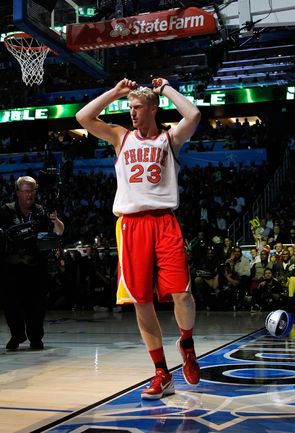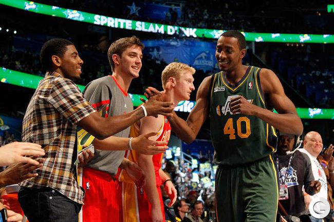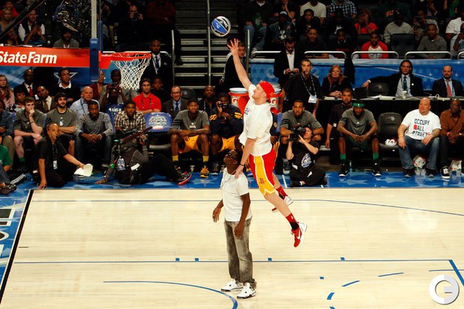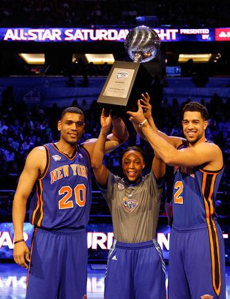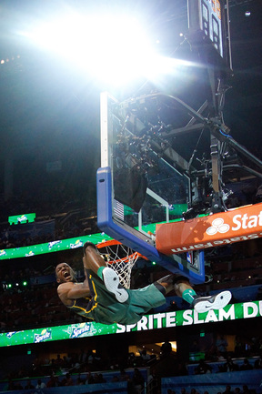 Завершился второй день звездного уик-энда НБА, в рамках которого прошли традиционные конкурсы. Победителем соревнования "звезд-снайперов" стал "Нью-Йорк". Конкурс на мастерство разыгрывающих выиграл Тони Паркер из "Сан-Антонио", в финале опередивший Рэйджона Рондо ("Бостон") и Дерона Уильямса ("Нью-Джерси"). Лучшим исполнителем трехочковых стал форвард "Миннесоты" Кевин Лав. Конкурс по броскам сверху, выиграл форвард "Юты" Джереми Эванс. Фото AFP