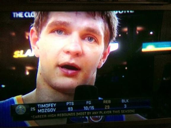 "Голден Стэйт" – "Денвер" – 99:100 (28:15, 25:28, 22:30, 24:27). Г: Стеф.Карри (24), К.Томпсон (21). Д: МОЗГОВ (23+29 подборов+3 передачи+1 перехват+3 блок-шота), Фой (20), Фарид (18+17 подборов).