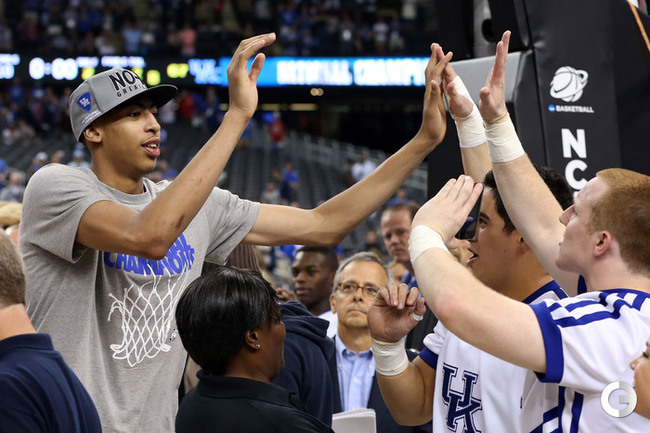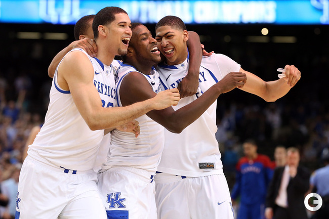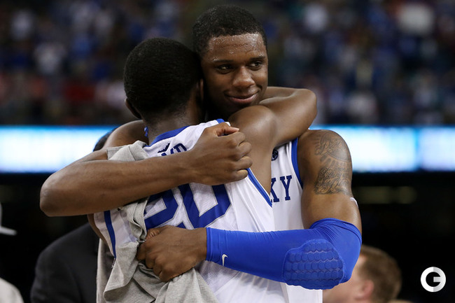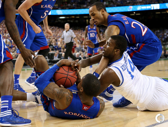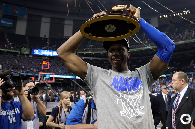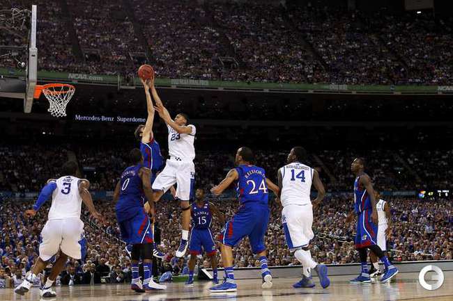 Баскетбол. NCAA. Финал. "Кентукки" - "Канзас" - 67:59. "Кентукки": Лэмб (22), Тиг (14), Кидд-Гилкрист (11 + 6 подборов), Джонс (9 + 7 подборов), Дэвис (6 + 16 подборов + 5 передач), Миллер (5 + 6 подборов). "Канзас": Тэйлор (19), Робинсон (18 + 17 подборов), Джонсон (13), Уити (5 + 7 подборов), Релефорд (4). Фото AFP