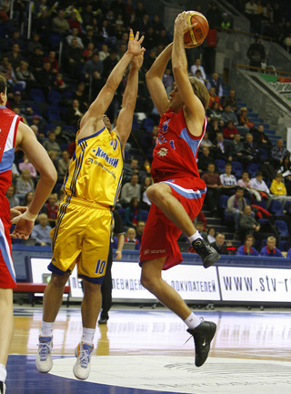 В центральном матче первого круга чемпионата России ЦСКА победил "Химки" в овертайме. Для подмосковного клуба это поражение стало вторым за неделю: в среду на своей площадке они уступили чемпиону Евролиги "Панатинаикосу" - также в дополнительной пятиминутке. Фото - Алексей ИВАНОВ, "СЭ"