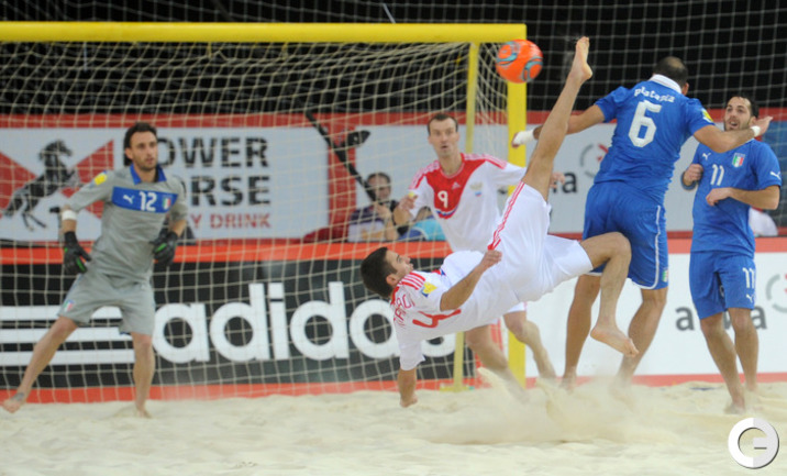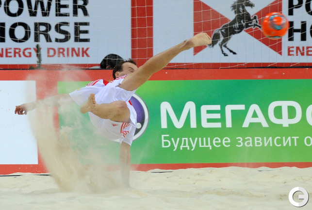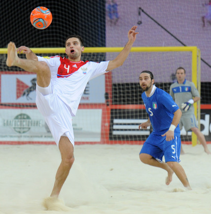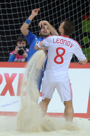 Пляжный футбол. Москва. Кубок Европы. 1/2 финала. РОССИЯ - Италия - 4:1 (2:0, 0:0, 2:1).Голы: Макаров, 7 (1:0). Бухлицкий, 12 (2:0). Макаров, 26 (3:0). Сориа, 28 (3:1). Шайков, 30 (4:1). Россия: Бухлицкий, Горчинский, Макаров, Крашенинников, Шишин, Шкарин, Леонов, Шайков, Еремеев, Ипполитов. Завтра в финале сборная России сыграет со сборной Португалии. Фото - Никита УСПЕНСКИЙ, "СЭ"