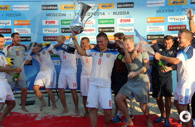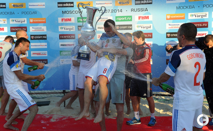 13.07.2014. Москва. Пляжный футбол. Евролига. Россия - Испания - 4:1. Выиграв у испанцев с разницей в 3 гола, Россия стала победителем этапа евролиги по пляжному футболу. Фото - Алексей ИВАНОВ "СЭ".