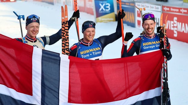 Норвежец Эндре Стремсхайм стал победителем масс-старта на чемпионате мира по биатлону в Ленцерхайде.