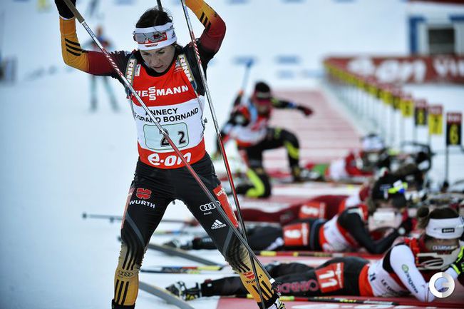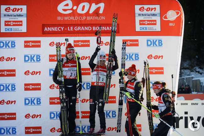 Биатлон. Анси. Кубок мира. 3-й этап. Женщины. Эстафета. 4х6 км. 1. Германия (Пройсс, Хенкель, Ф. Хильдебранд, Дальмайер) – 1:06.27,8 (0 шт. кругов + 3 доп. патрона). 2. Украина (Джима, Вита Семеренко, Вал. Семеренко, Пидгрушная) – отставание 23,3 (0 + 4). 3. Норвегия (Т. Экхофф, Хорн, Сулемдаль, Т. Бергер) – 23,8 (0 + 10)...6. РОССИЯ (СЛЕПЦОВА, ГЛАЗЫРИНА, ШУМИЛОВА, ВИЛУХИНА) – 2.00,4 (0 + 5). Фото AFP