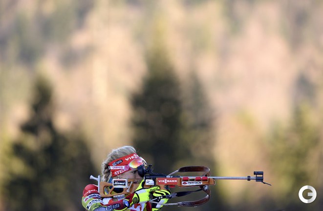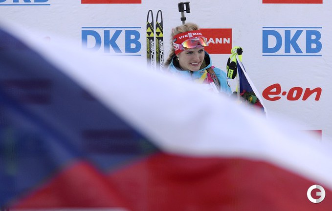 Победительница индивидуальной гонки на этапе Кубка мира в Рупольдинге Габриэла СУКАЛОВА. Фото AFP