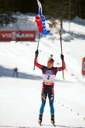 Россиянин Антон Шипулин стал победителем гонки преследования в рамках этапа Кубка мира в словенской Поклюке. Вторым стал швед Бьорн Ферри, третьим – 40-летний восьмикратный олимпийский чемпион норвежец Оле Эйнар Бьорндален. Фото AFP