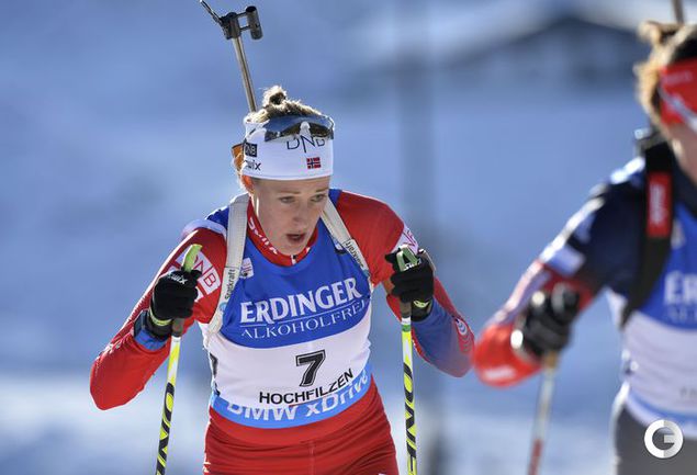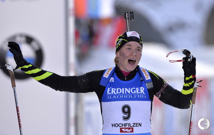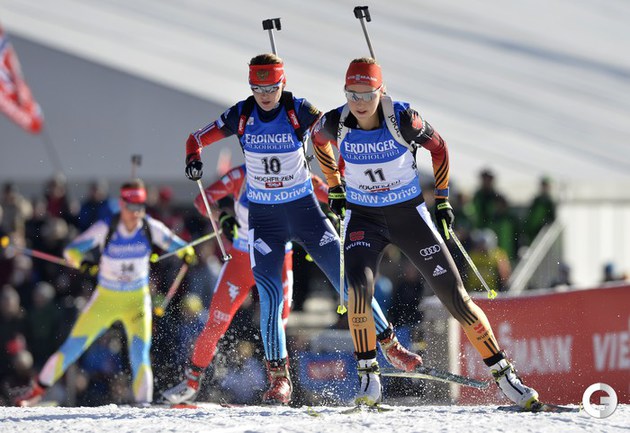 Победу в гонке преследования на втором этапе Кубка мира в Хохфильцене одержала Кайса Мякяряйнен. Финская спортсменка вышла на старт первой и показала время 30.44,9. Второй к финишу пришла россиянка Ольга Глазырина, в индивидуальной гонке ставшая десятой. Ее отставание от победительницы – 34,4. Француженка Анаис Бескон стала третьей – 46,5. Ольга Подчуфарова, как и в индивидуальной гонке, пришла к финишу четвертой. Фото AFP