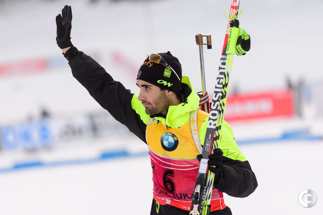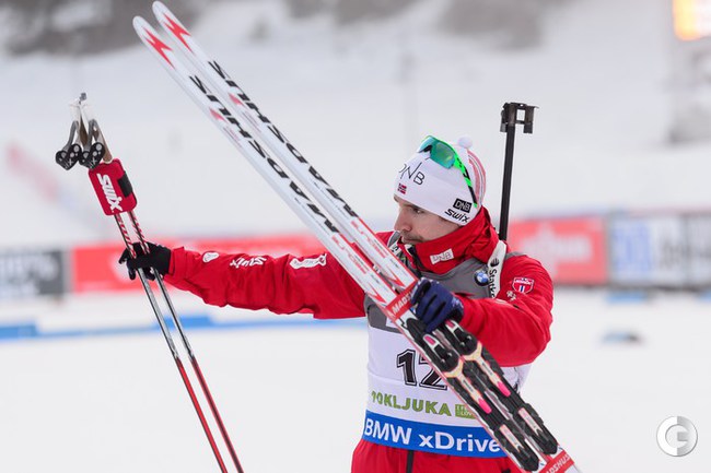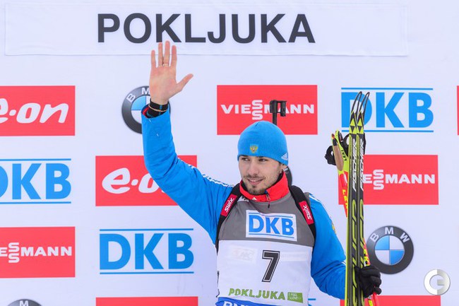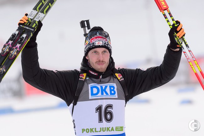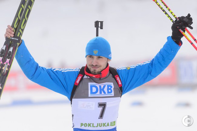 Поклюка (Словения). Кубок мира. 3-й этап. Мужчины. Спринт 10 км. Первым пришел россиянин Антон Шипулин, на втором месте Доминик Ландертингер из Австрии, третьим стал норвежец Эмиль Хегле Свендсен. Фото AFP