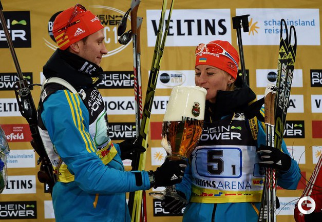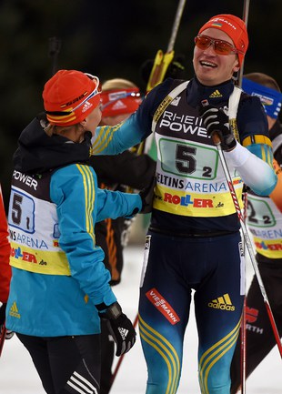 Сборная России в составе Яны Романовой и Евгения Гараничева стали третьими по итогам традиционной Рождественской гонки в Гельзенкирхене. Победу одержали украинцы Валентина Семеренко и Сергей Семенов. Второй результат показали Франсиска Хильдебранд и Эрик Лессер из Германии. Фото AFP