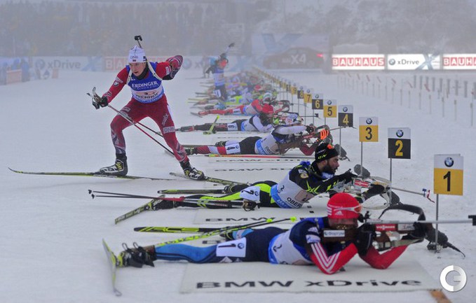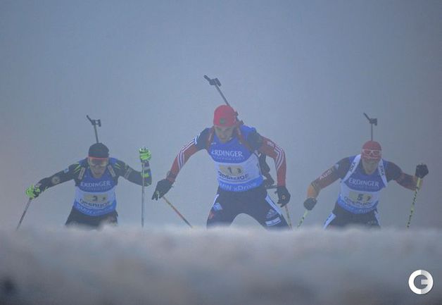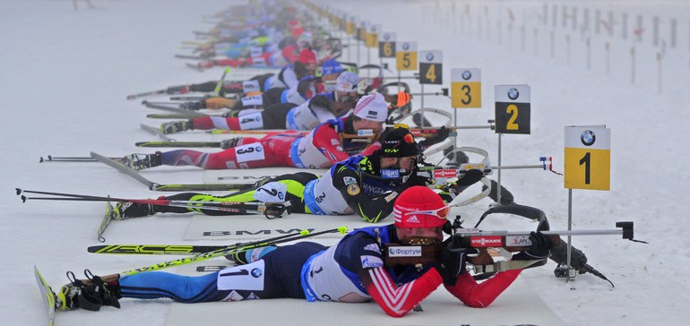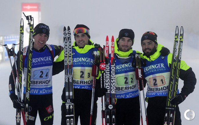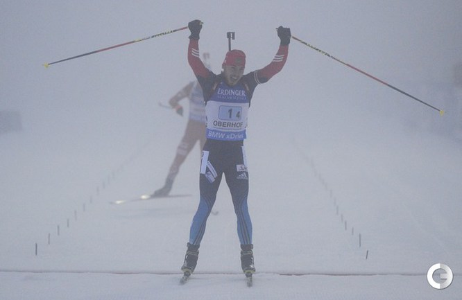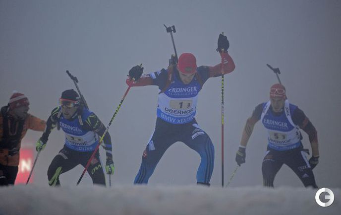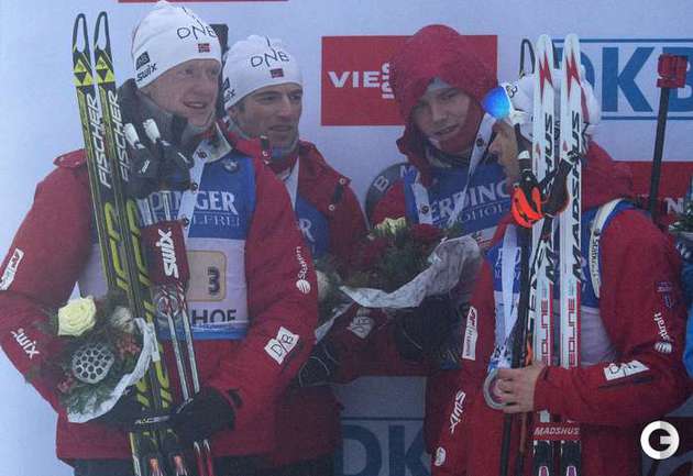 Оберхоф (Германия). Кубок мира. Мужчины. Эстафета, 4х7,5 км. 1. РОССИЯ (ГАРАНИЧЕВ, ЛАПШИН, МАЛЫШКО, ШИПУЛИН) – 01:15.24,2 (1 шт. круг + 12 доп. патронов). 2. Норвегия (Кристиансен, Ус, Й. Бе, Бьорндален) – отставание 2,3 (1 + 10). 3. Франция (С. Фуркад, Беатрикс, С. Дестье, Фийон Майе) – 1.32,3 (1 + 12). Фото AFP