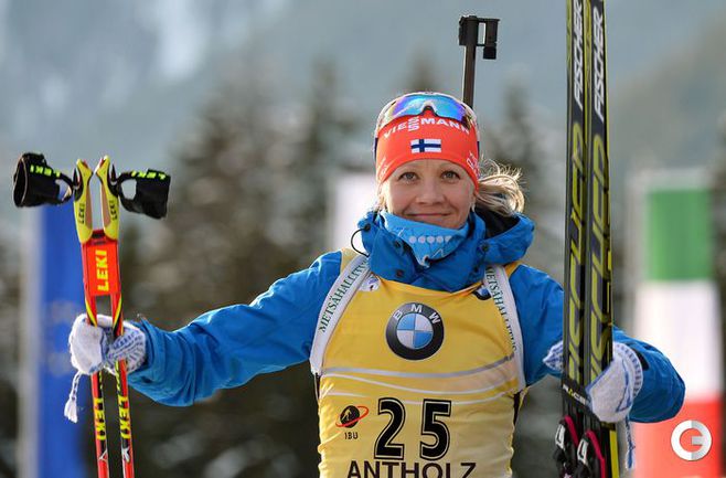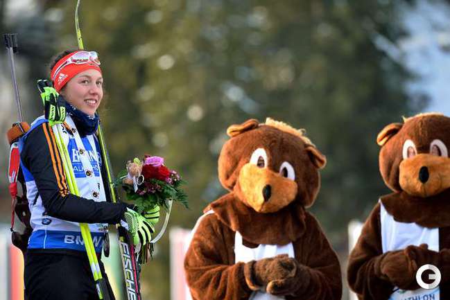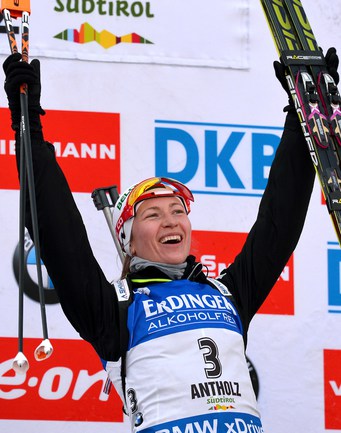 Антерсельва. Кубок мира. Женщины. Спринт. 7,5 км. 1. Домрачева (Белоруссия) – 19.57,8 (0 шт. кругов). 2. Мякяряйнен (Финляндия) – отставание 26,9 (1). 3. Дальмайер (Германия) – 50,4 (0). Фото AFP