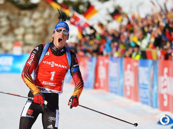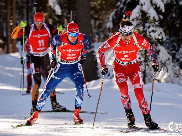 Антерсельва. Кубок мира. Мужчины. Гонка преследования. 12,5 км. 1. Шемп (Германия) – 31.27,9 (2). 2. С. Эдер (Австрия) – отставание 0,1 (1). 3. ГАРАНИЧЕВ (Россия) – 1,1 (1). Фото AFP