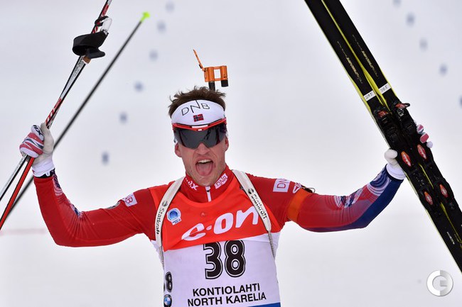 Биатлон. Контиолахти. Чемпионат мира. Мужчины. Спринт 10 км. 1. Й. Бё (Норвегия) - 24.12,8 (1 штрафной круг). 2. Смит (Канада) - отставание 12,1 (1). 3. Т. Бё (Норвегия) - 25,3 (0). 4. С. Фуркад (Франция) - 29,5 (1). 5. Лессер (Германия) - 30,3 (1). 6. ГАРАНИЧЕВ (Россия) - 35,6 (2). Фото AFP и REUTERS