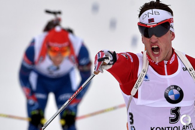 Контиолахти. Чемпионат мира. Мужчины. Гонка преследования 12,5 км. 1. Лессер (Германия) – 30.47,9 (0 штрафных кругов). 2. ШИПУЛИН (Россия) – отставание 17,0 (1). 3. Т. Бё (Норвегия) – 18,7 (1). Фото AFP