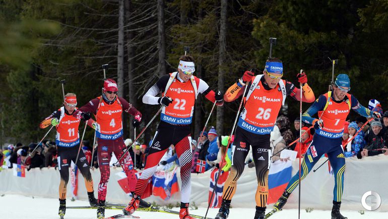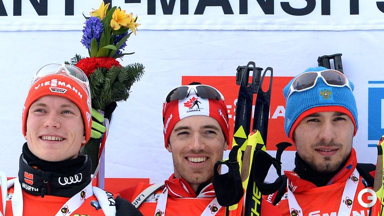 Ханты-Мансийск. Кубок мира. Мужчины. Гонка преследования. 12,5 км. 1. Н. Смит (Канада) – 32.04,9 (1 штрафной круг). 2. Долль (Германия) – отставание 24,0 (2). 3. ШИПУЛИН (Россия) – 35,7 (4). Фото AFP