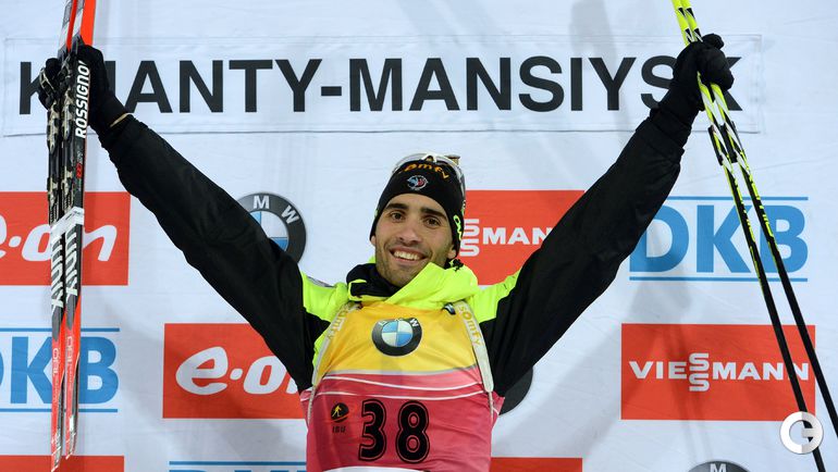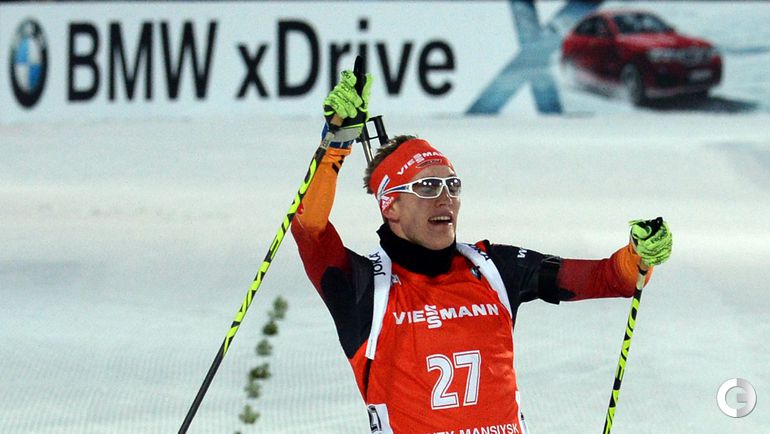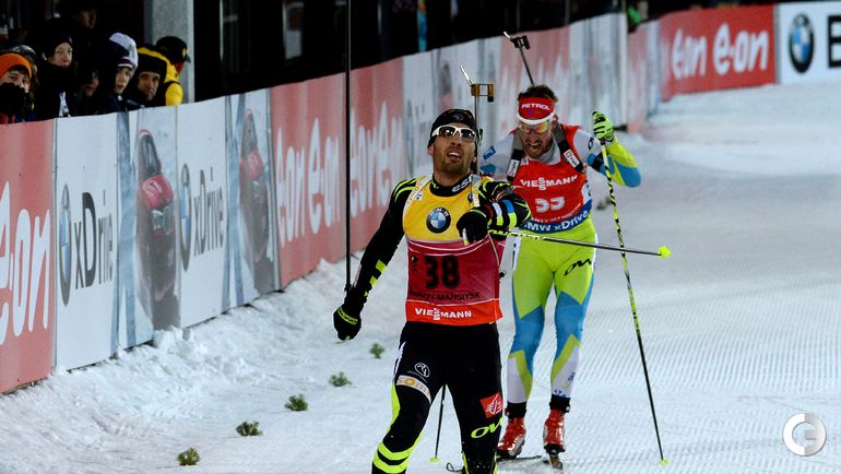 Ханты-Мансийск (Россия). Кубок мира. Мужчины. Спринт. 10 км. 1. М. Фуркад (Франция) - 23.47,0 (0 шт. кругов). 2. ШИПУЛИН (Россия) - отставание 13,0 (0). 3. Долль (Германия) - 18,3 (1). Фото AFP
