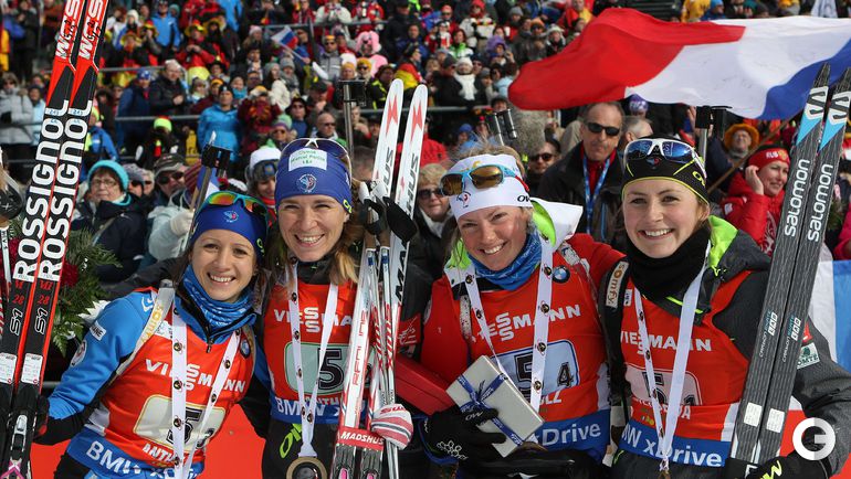 Мужская и женская сборные России завоевали золото и бронзу в эстафете в Антерсельве.