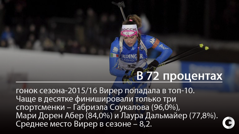 "СЭ" продолжает подводить итоги сезона. Сегодня – статистика лучшей итальянской биатлонистки Доротеи Вирер.