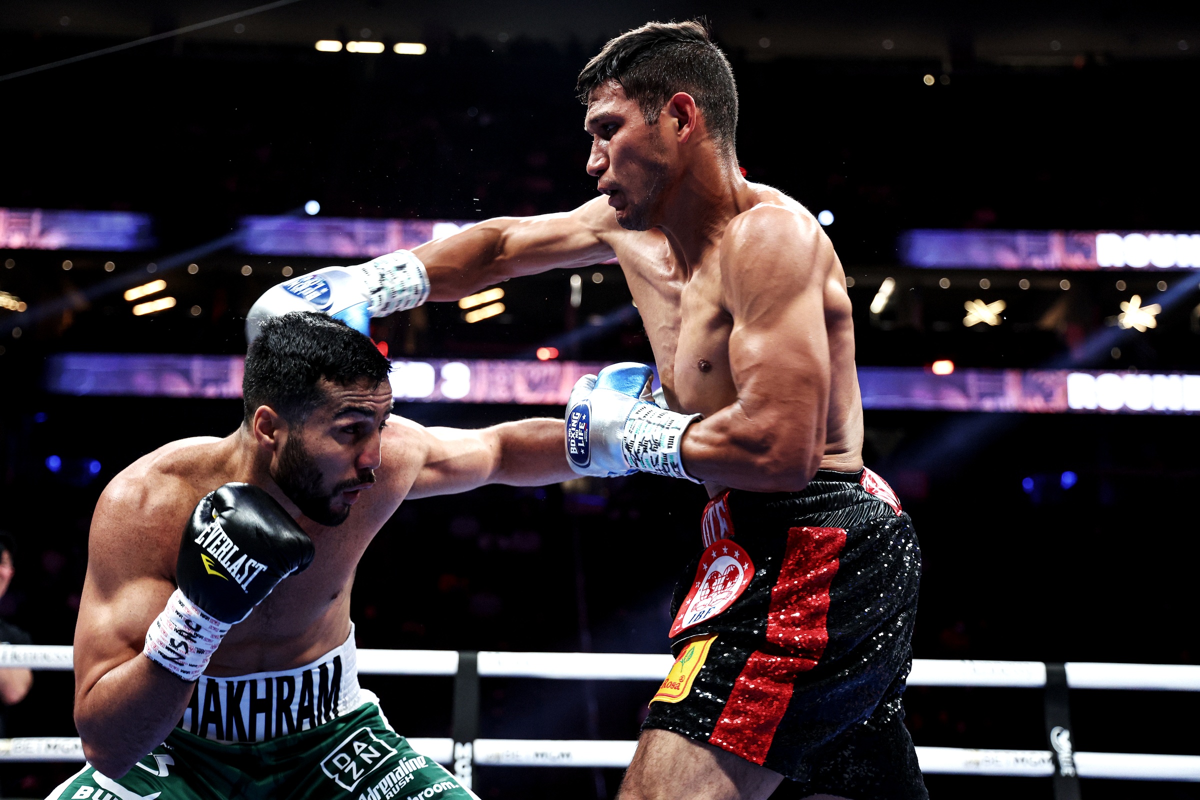 У нас в самом разгаре бои основного карда. Шахрам Гиясов единогласным решением судей победил Кристиана Гомеса, продлил свою победную серию до 13-0 и завоевал вакантный титул IBF в полусреднем весе.
